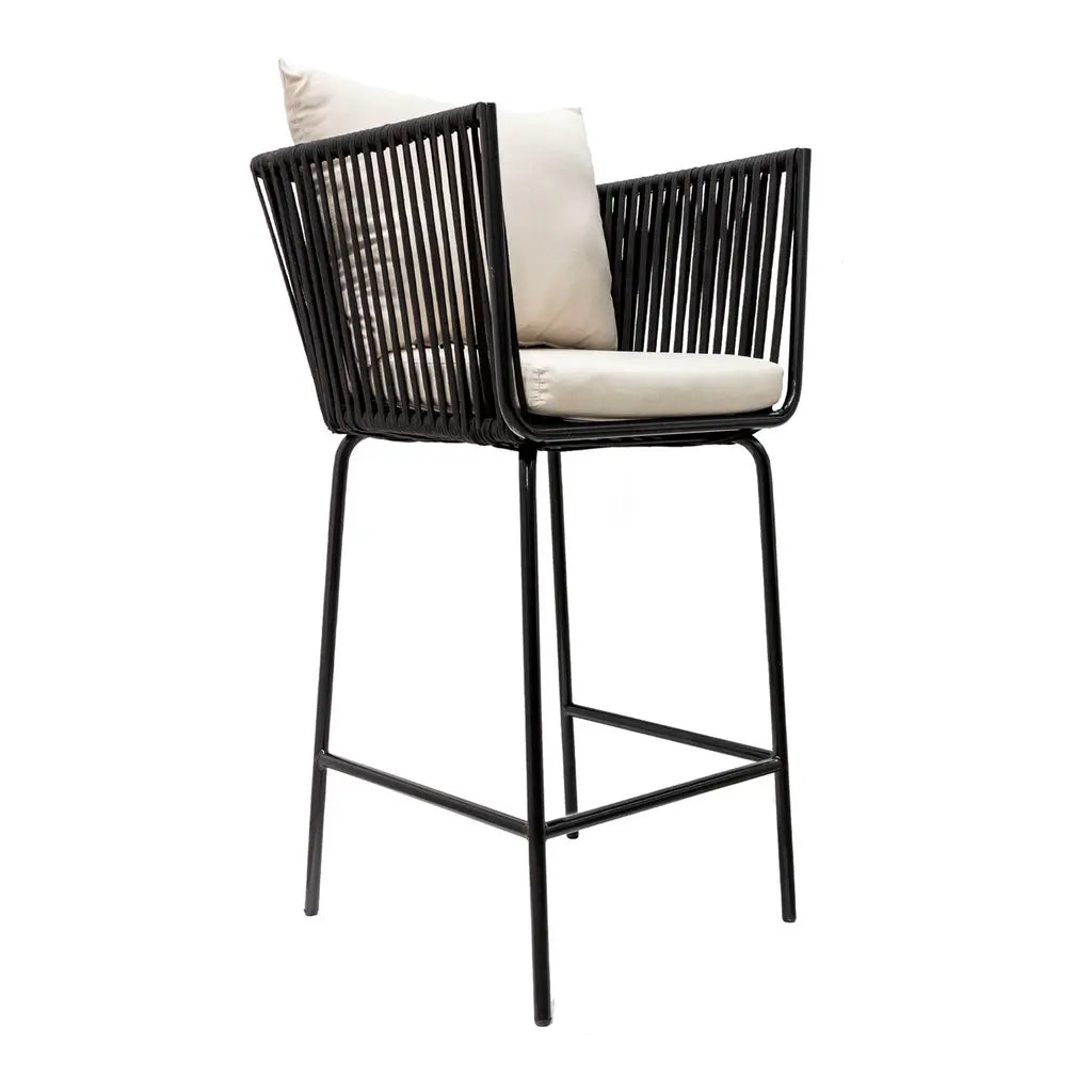 Chetumal banco metal negro cuerda negra cojineria loneta